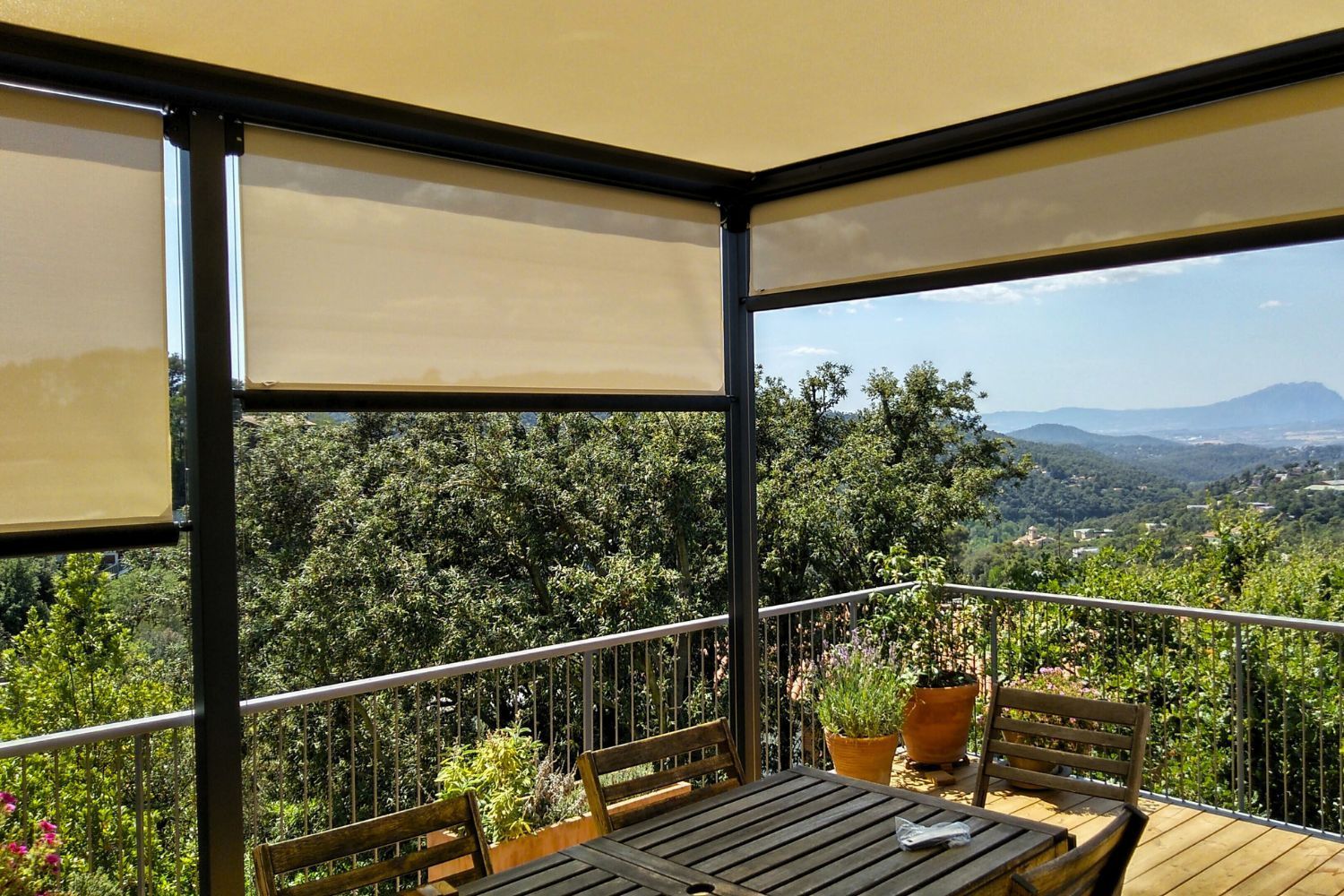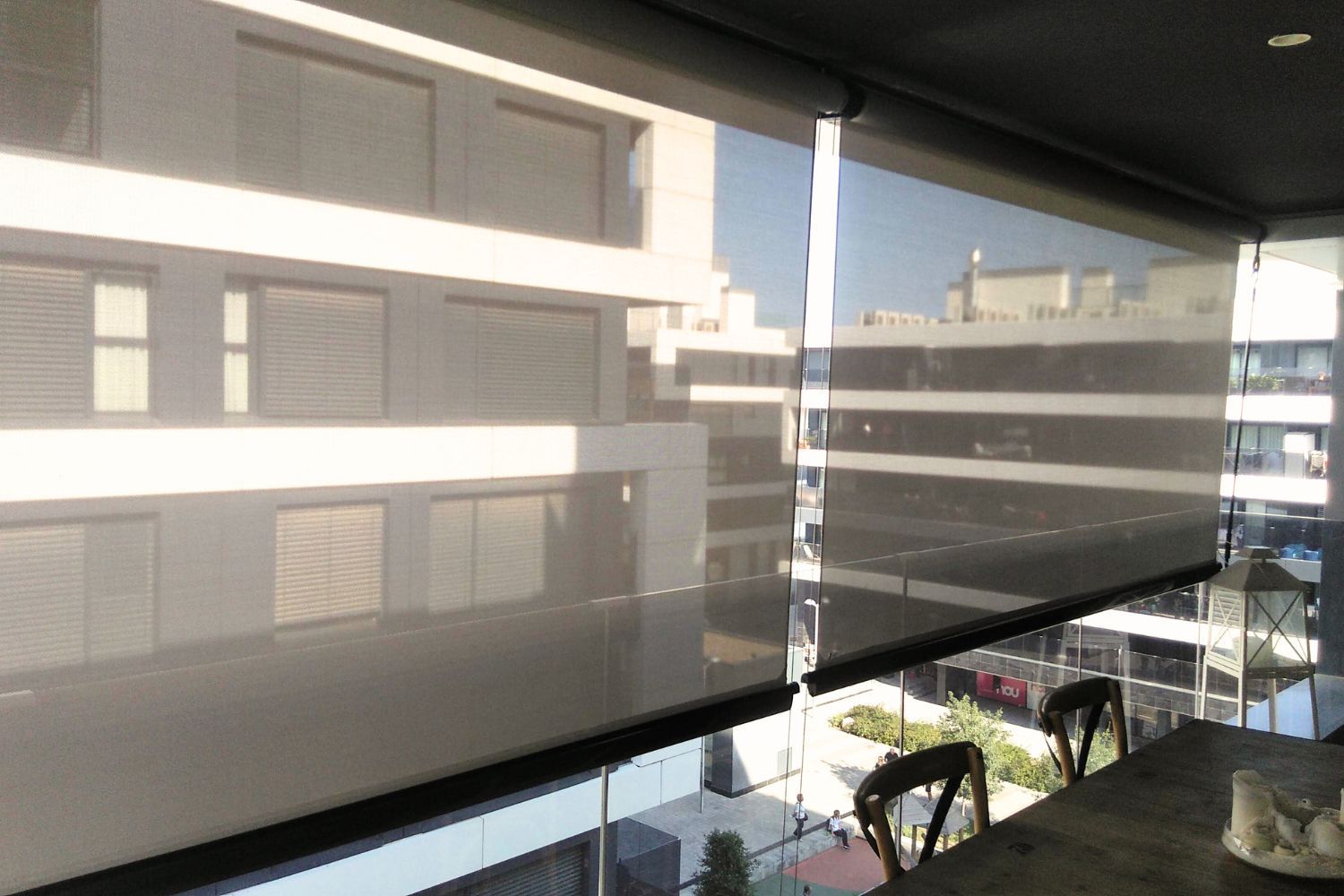 En zonas expuestas al viento, como áticos o terrazas abiertas, los toldos verticales se convierten en un elemento imprescindible. Actúan como barrera lateral, reduciendo corrientes de aire y mejorando significativamente el confort del espacio exterior.